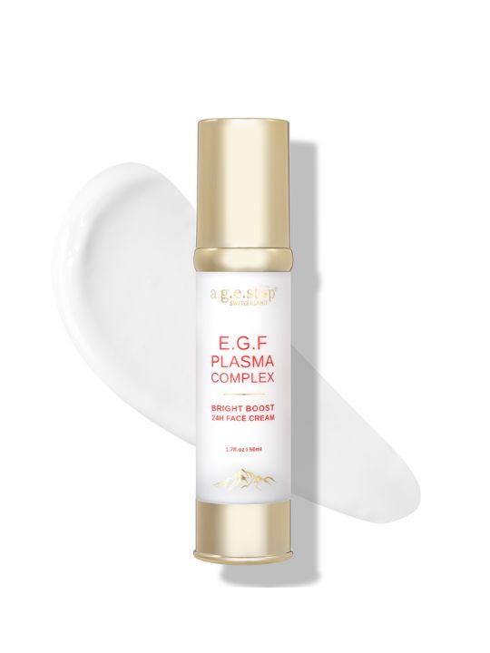 Kem dưỡng Agestop E.G.F. Plasma 24h Face Cream là một phức hợp sinh học mạnh mẽ, giảm tích cực các dấu hiệu lão hóa sớm, đồng thời làm dịu và giảm căng thẳng cho làn da. Với phức hợp Bio Placenta độc đáo - sự kết hợp của 5 yếu tố tăng trưởng cốt lõi (EGF, IGF-1, FGF axit, FGF cơ bản, VEGF) - sản phẩm hỗ trợ phục hồi các yếu tố lipid tự nhiên, hỗ trợ da tự sản sinh lipid. Sự kết hợp này thúc đẩy quá trình tái tạo và phục hồi tế bào, mang lại làn da căng mịn và săn chắc. Ngoài ra, Phức hợp Ectoin hoạt động như một "lá chắn" bảo vệ da khỏi stress và tác hại từ môi trường, trong khi LumaBright™ cùng Niacinamide tích cực làm sáng, cải thiện tông màu da, mờ các vết thâm, nám, mang lại vẻ ngoài rạng rỡ chỉ sau một đêm.