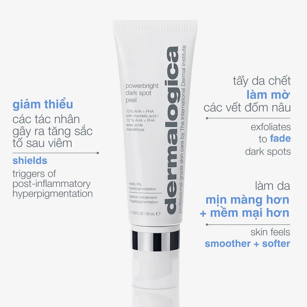 Dermalogica PowerBright Dark Spot Peel là một sản phẩm hỗ trợ giảm tế bào chết làm mờ thâm nám sử dụng tại nhà, được thiết kế để làm sáng rõ các vết thâm, đốm nâu, dấu hiệu sau mụn và nám da, đồng thời cải thiện tông màu da không đồng đều. Sản phẩm này đặc biệt phù hợp cho tất cả các loại da, nhất là những làn da dễ bị tăng sắc tố.