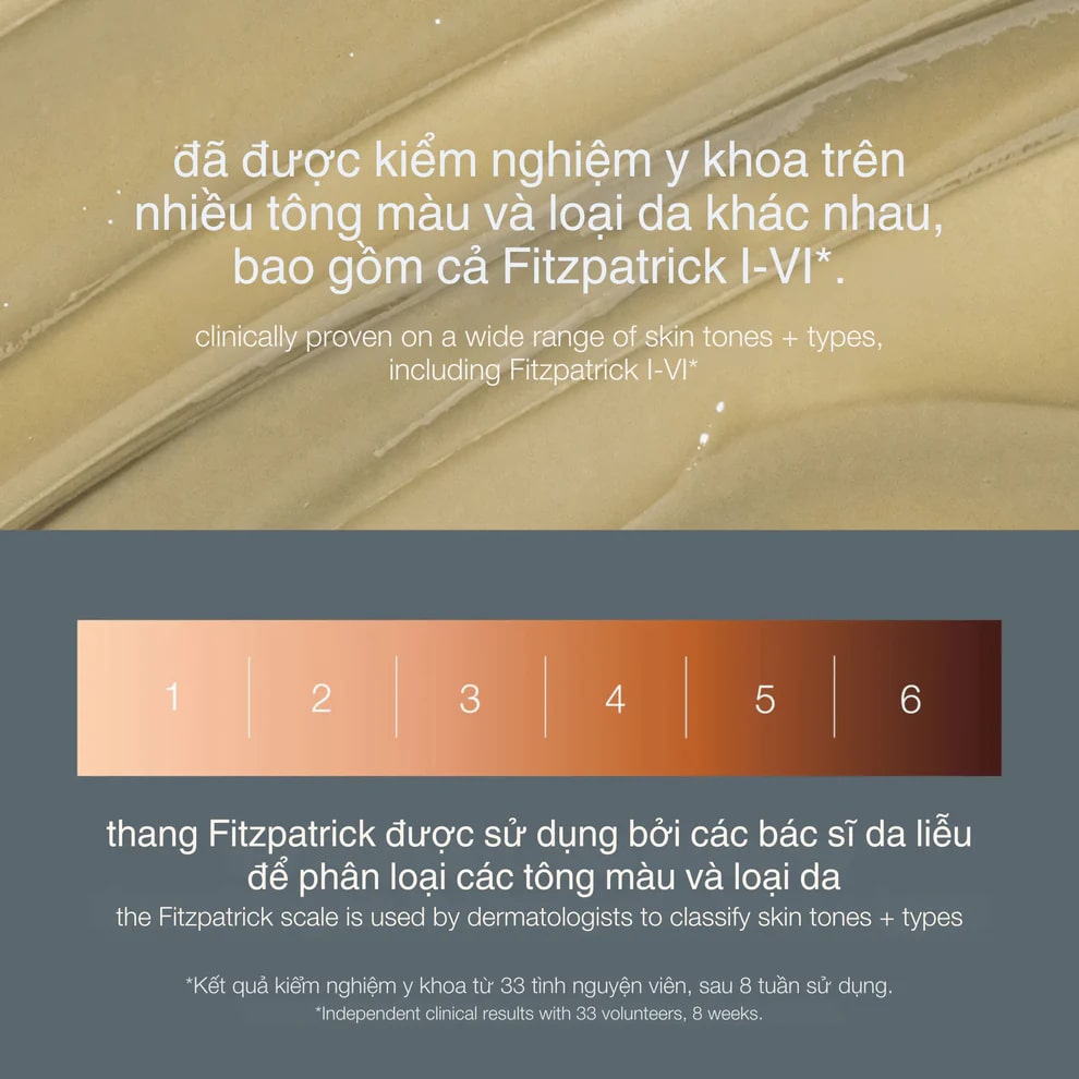 - Làm sáng rõ các vết thâm chỉ sau 5 lần sử dụng: Sản phẩm này tập trung làm mờ các sắc tố trên bề mặt da, bao gồm các vết thâm do tác động của tia UV, dấu hiệu sau mụn và nám da, mang lại làn da đều màu và rạng rỡ hơn.