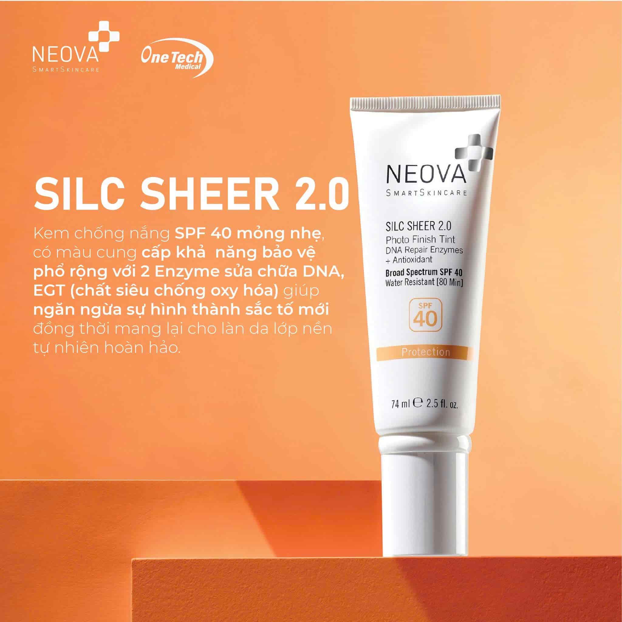 Kem nền chống nắng Neova DNA Damage Control Active Silc Sheer 2.0 SPF 40 là dòng sản phẩm đáng tin dùng để bảo vệ bạn hoàn toàn khỏi các tia cực tím hàng ngày. Sản phẩm đồng thời giúp làn da không bị đen sạm do nắng đem lại. Neova DNA Damage Control Active Silc Sheer 2.0 SPF 40 được các bác sĩ da liêu chuyên dùng trong việc hỗ trợ các liệu trình giải quyết các vấn đề về da như nám, tàn nhàng.....
