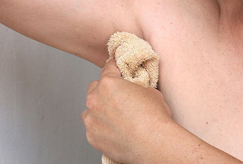 - Giặt khăn bằng nước ấm, rồi lau sạch nách để lỗ chân lông giãn nở.