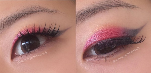 Cách trang điểm này hoàn toàn không dùng đến bút kẻ mắt mà vẫn tạo được đôi mắt sắc sảo, đồng thời vẫn có hiệu ứng mơ màng, dịu dàng, ngọt ngào. Bạn tán phấn tông màu ấm như hồng, đỏ lên bầu mắt trước, sau đó chỉ cần dùng phấn mắt màu đen, màu xám hoặc màu nâu để vẽ phần đuôi mắt mèo, không nên tô quá đậm.