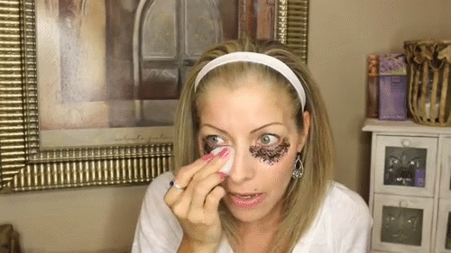 Bước 3: Sau 20 phút, dùng bông tẩy trang thấm nước đắp lên phần cà phê để làm ẩm da mắt một lúc rồi mới lau đi.