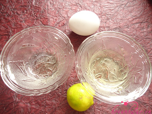 Bước 1: Tách đôi vỏ trứng, nghiêng để đổ lòng trắng vào một cái chén (lòng đỏ vẫn nằm trong 1/2 vỏ trứng). Chỉ cần khoảng ½ lòng trắng thôi là đủ cho mặt.