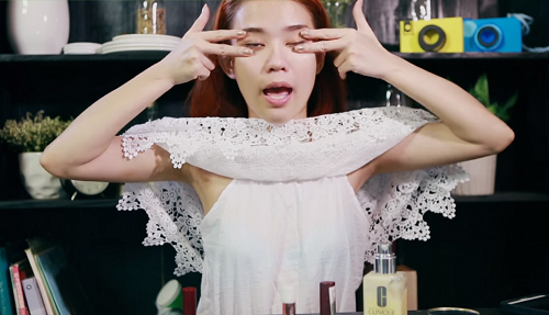 Ngọc Thảo dùng loại kem dưỡng ẩm vùng mắt chuyên biệt. Bởi vùng da đó rất mỏng, dễ bị tổn thương do trang điểm quá nhiều. Đồng thời mát xa đánh tan bọng mắt.