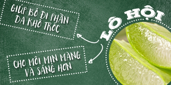 Chúng ta vẫn thường nghe đến công dụng dưỡng ẩm thần kì của lô hội, đặc biệt là khi sử dụng ở dạng gel. Song nếu bạn không có thời gian để chiết xuất gel lô hội, bạn vẫn có thể dùng nguyên liệu này trực tiếp để dưỡng ẩm môi. Lượng nước và vitamin dồi dào trong lô hội không chỉ giúp môi bớt khô nẻ, mà còn làm sáng màu môi, tạo lớp bóng tự nhiên cho môi – khiến làn môi luôn hồng hào như thoa son vậy!