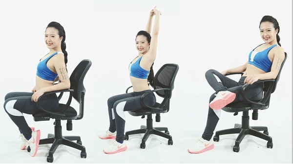 Bài tập này không làm bạn có cảm giác mệt mỏi hay đổ mồ hôi quá nhiều nhưng vẫn hiệu quả. Thế mới thần kỳ chứ. Dưới đây là một số động tác cơ bản bạn có thể thực hiện dễ dàng trên ghế ngay tại cơ quan. Cùng tham khảo nhé!