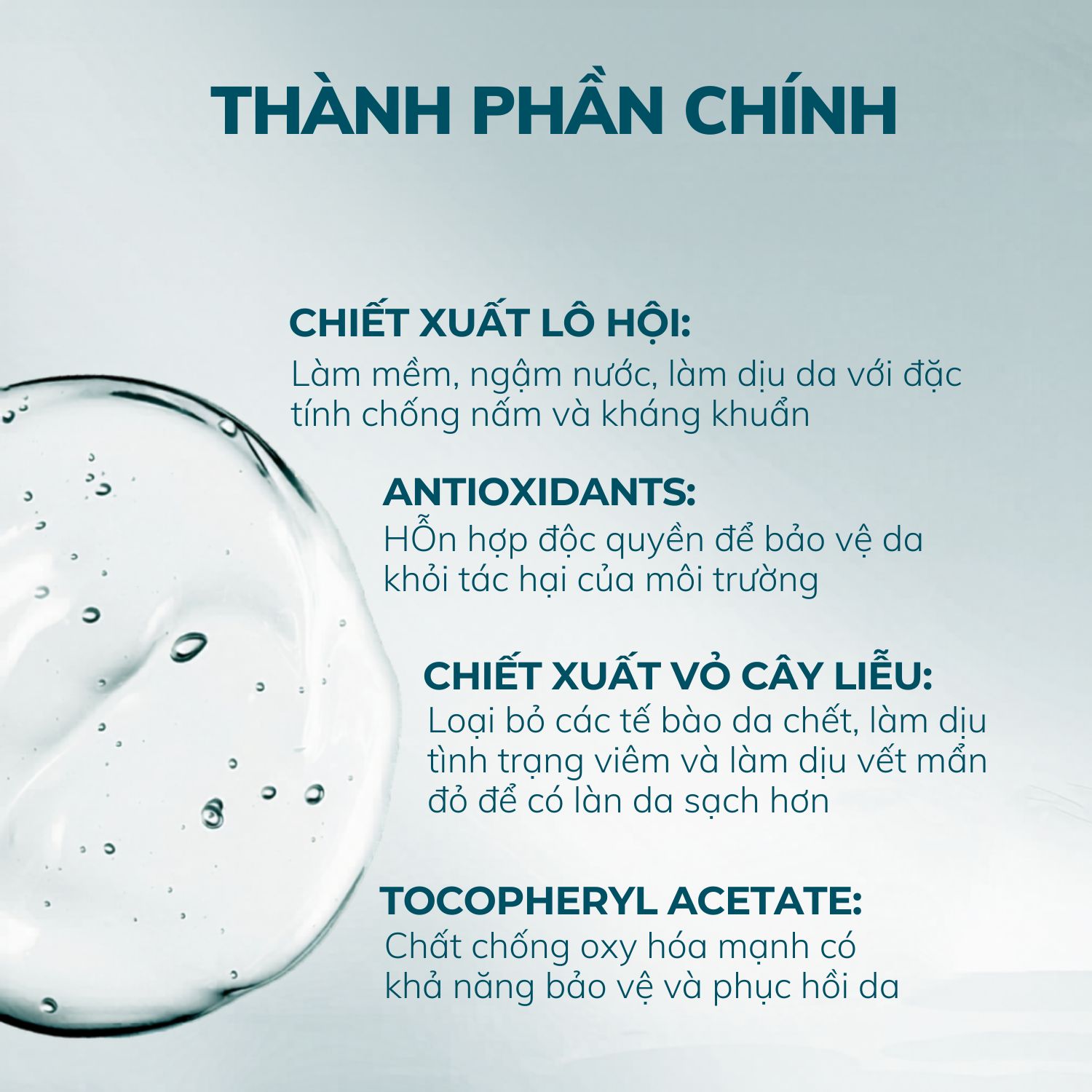 - Giữ gìn độ ẩm tự nhiên: Công thức đặc biệt giúp tái tạo độ ẩm sinh lý, ngăn ngừa hoàn toàn cảm giác khô căng hay châm chích thường gặp sau khi rửa mặt.