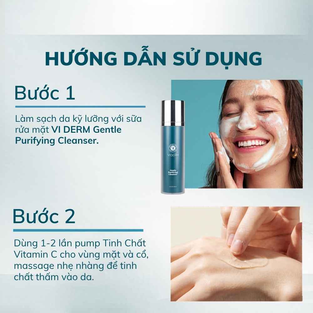 Buổi sáng: Sau bước làm sạch với Bio-Active Cleansing Gel, thoa 1-2 pump VI Derm Vitamin C. Đừng quên kết hợp cùng Sakura Physical Daily Defense để tạo ra "lá chắn kép" hoàn hảo dưới nắng gắt Việt Nam.